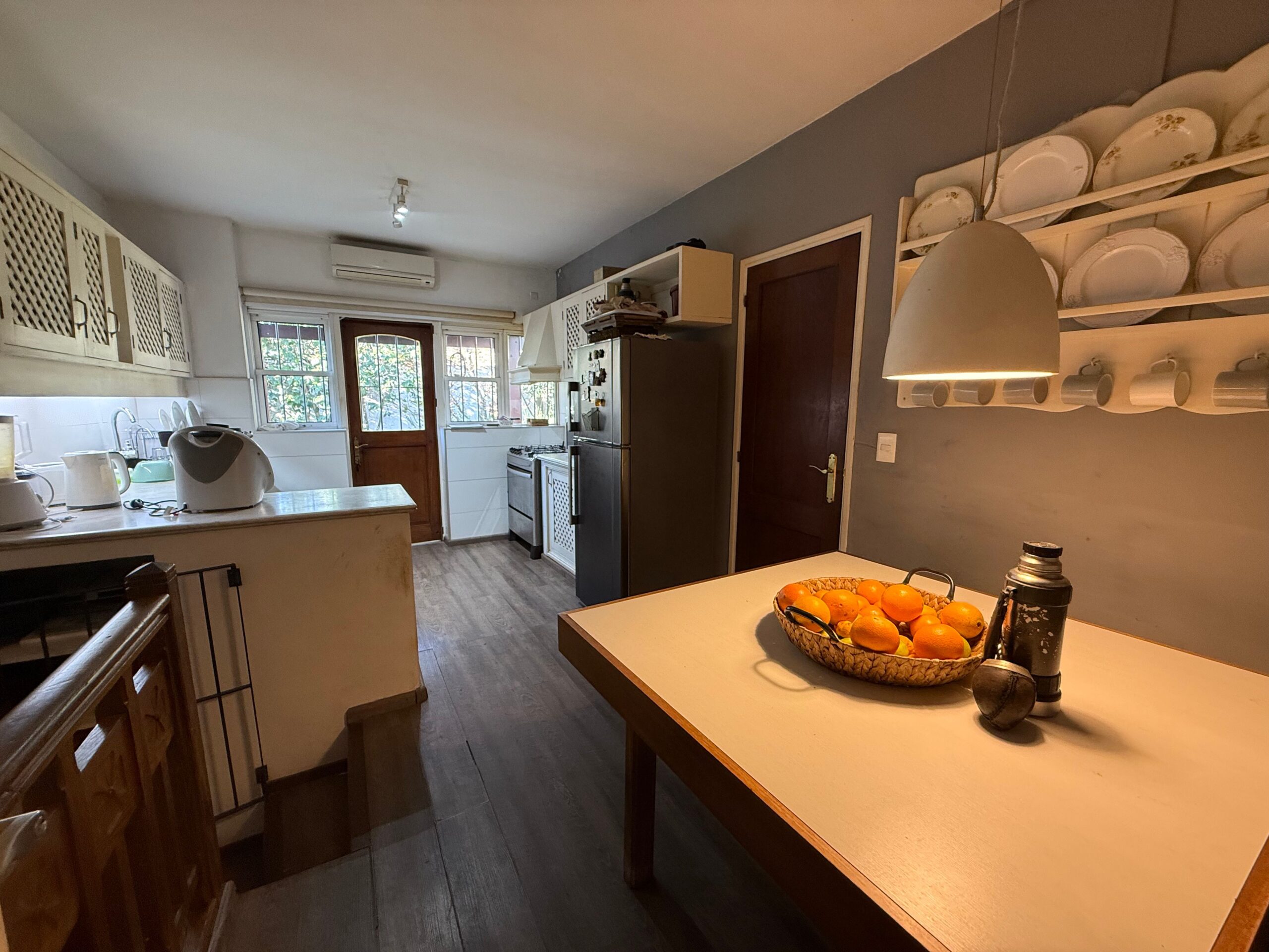 Casa en una planta con subsuelo en Carrasco Norte. Sólida construcción desarrollada principalmente en una planta, con 17 metros de frente y orientación oeste. Amplio living comedor con estufa a leña. Estar definido y cómodo escritorio. En el subsuelo se encuentra un segundo estar también con estufa a leña, ideal como sala de juegos o dormitorio. Cocina definida. 4 dormitorios, uno de ellos en suite. Al fondo, agradable terraza con parrillero. La casa cuenta con aires acondicionados en todos los ambientes.