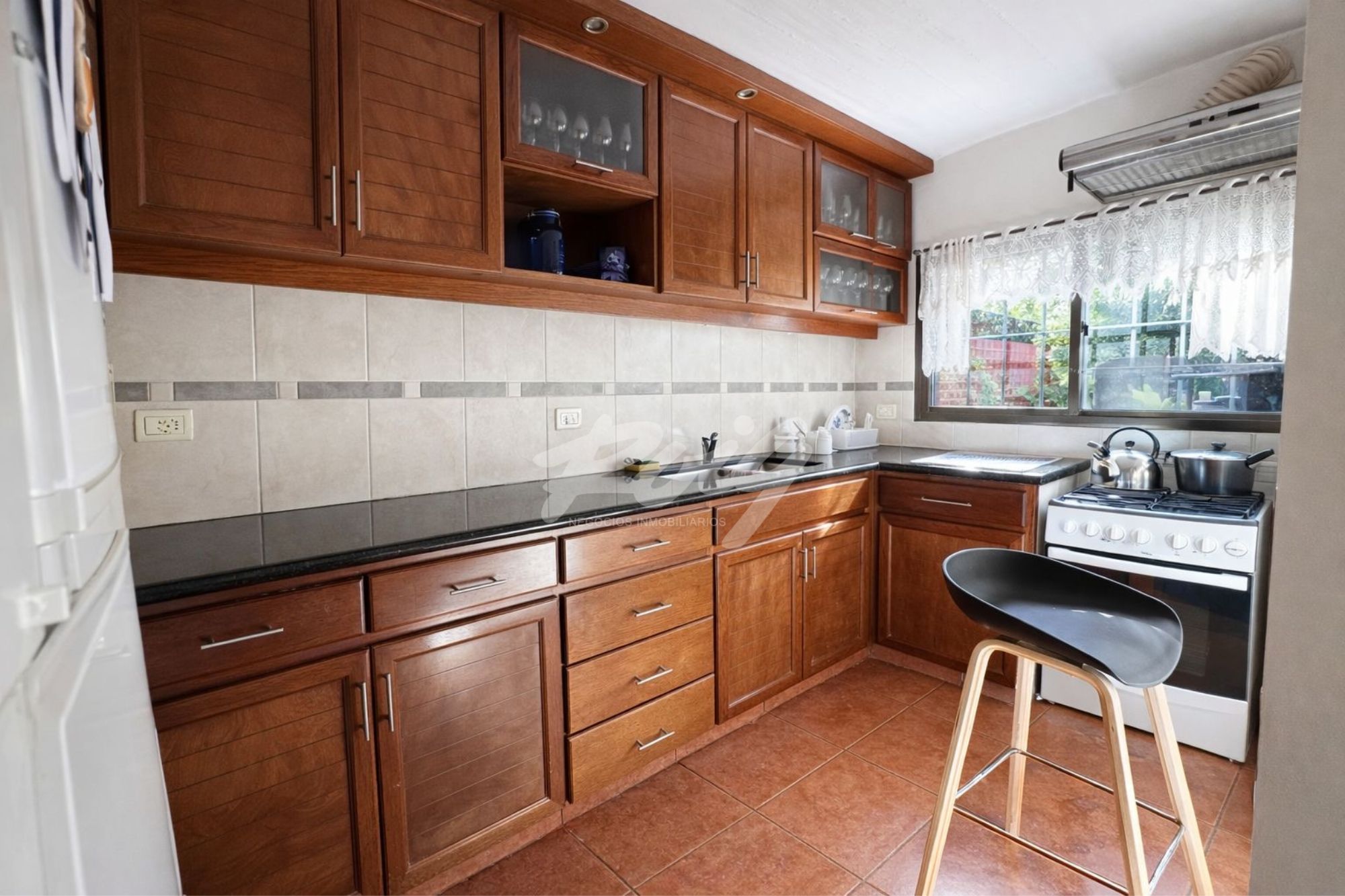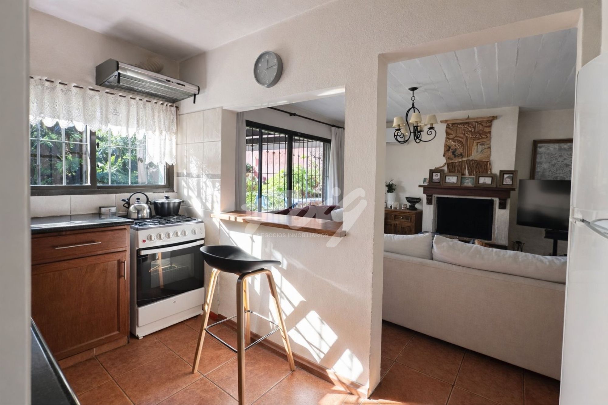 La casa da paso a un cómodo living con vista al frente. Toilette de visitas. Estar – comedor luminoso con estufa de leña tradicional y salida directa hacia el exterior. Cocina definida con buen lugar de guardado que se vincula con el área social a través de barra hacia el estar.