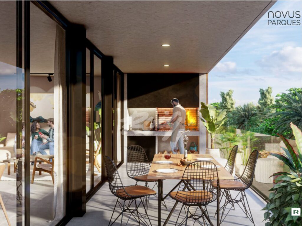 Distribuye living – comedor con salida directa a amplia terraza. Cocina integrada con mobiliario aéreo y bajo mesada y previsión para lavavajillas y lavarropas. Cuenta con 2 dormitorios con placares completos, dormitorio principal en suite con vestidor y baño completo adicional. Incluye preinstalación para aire acondicionado, iluminacion LED y previsión para TV cable/satelital.