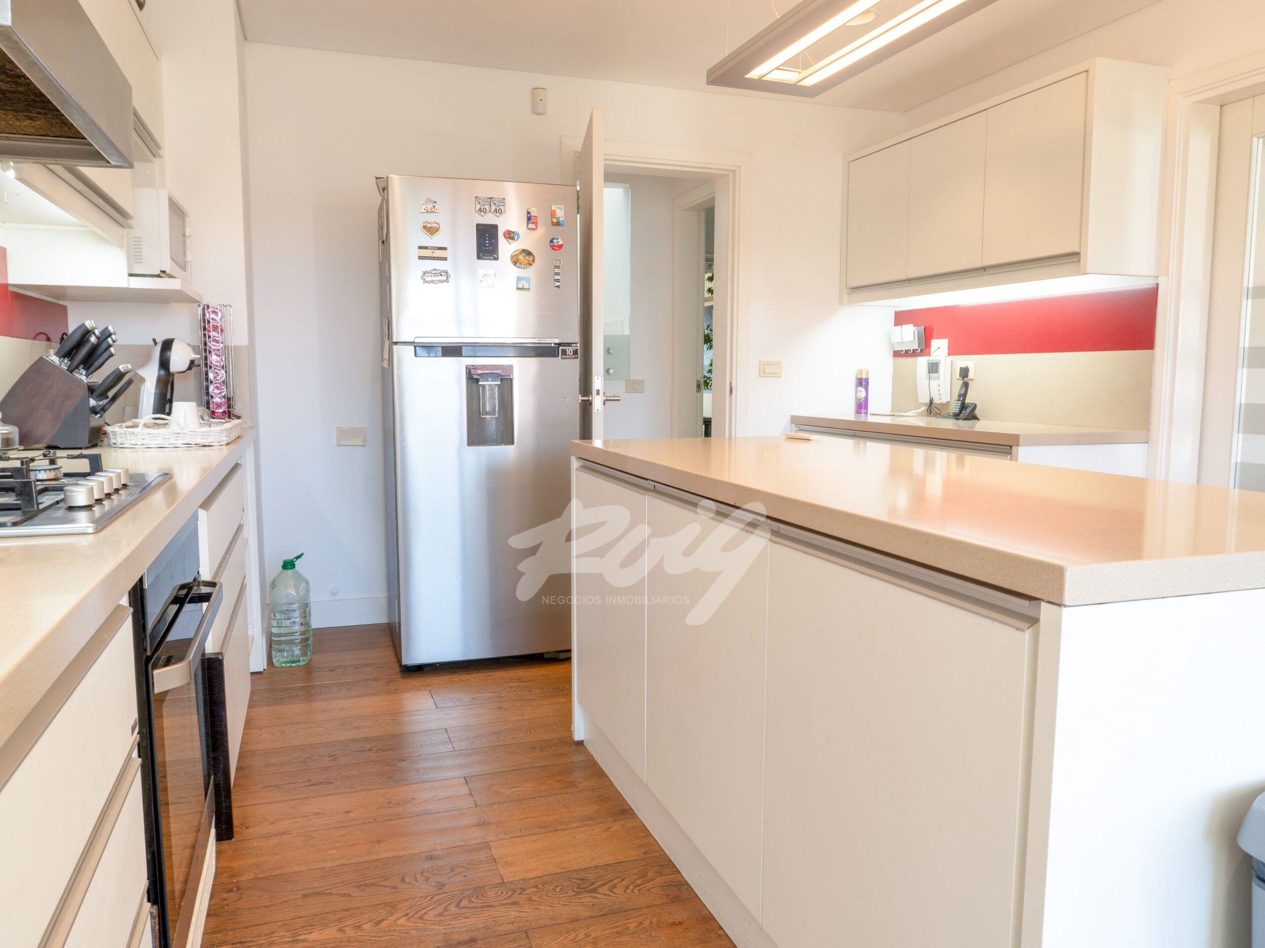 El área intima incluye 2 dormitorios en suite, el principal con vestidor, y un espacio ideal para escritorio. Sistema de calefacción central por losa radiante y agua caliente a través de caldera a gas, con aire acondicionado en cada ambiente.