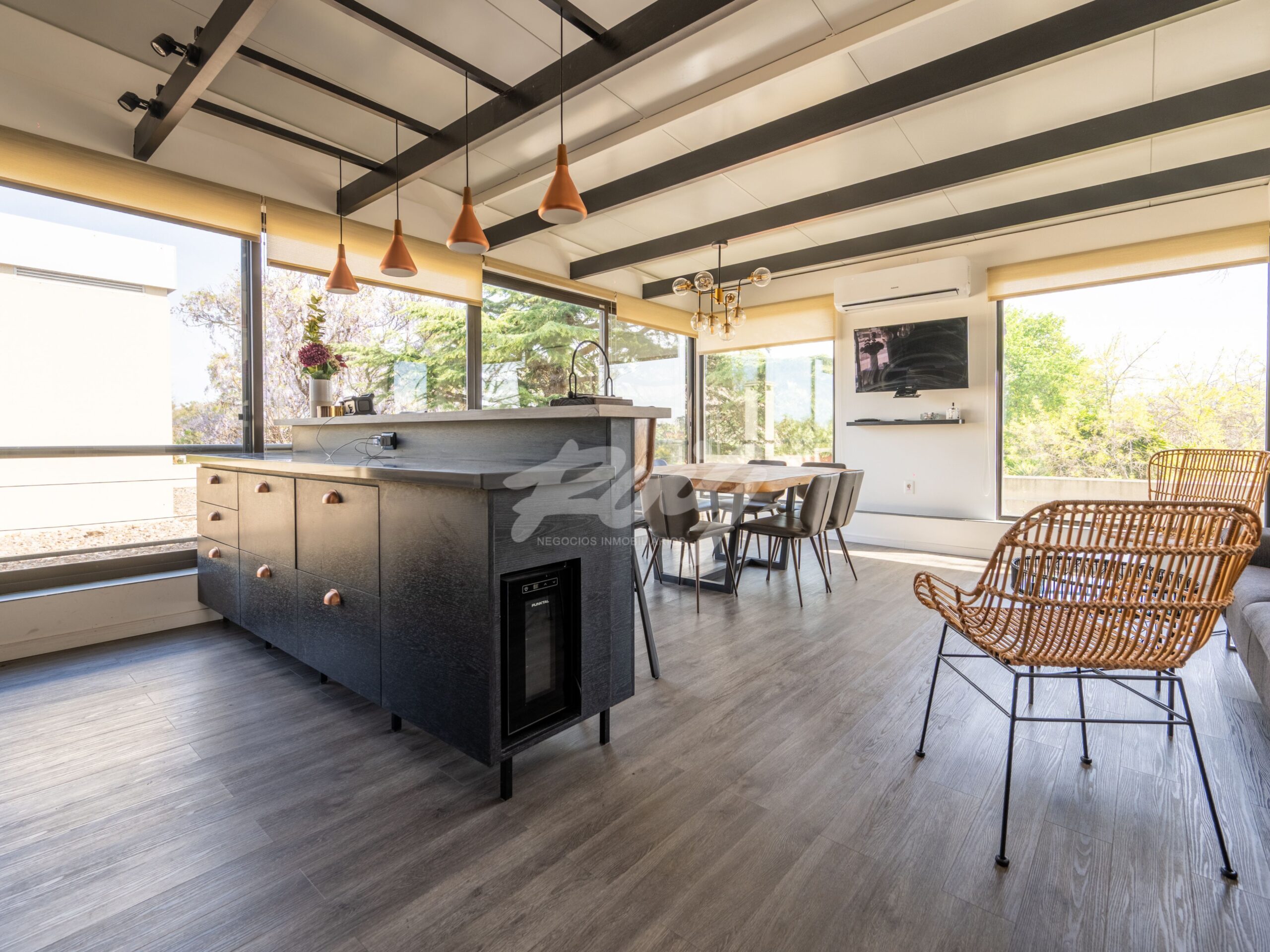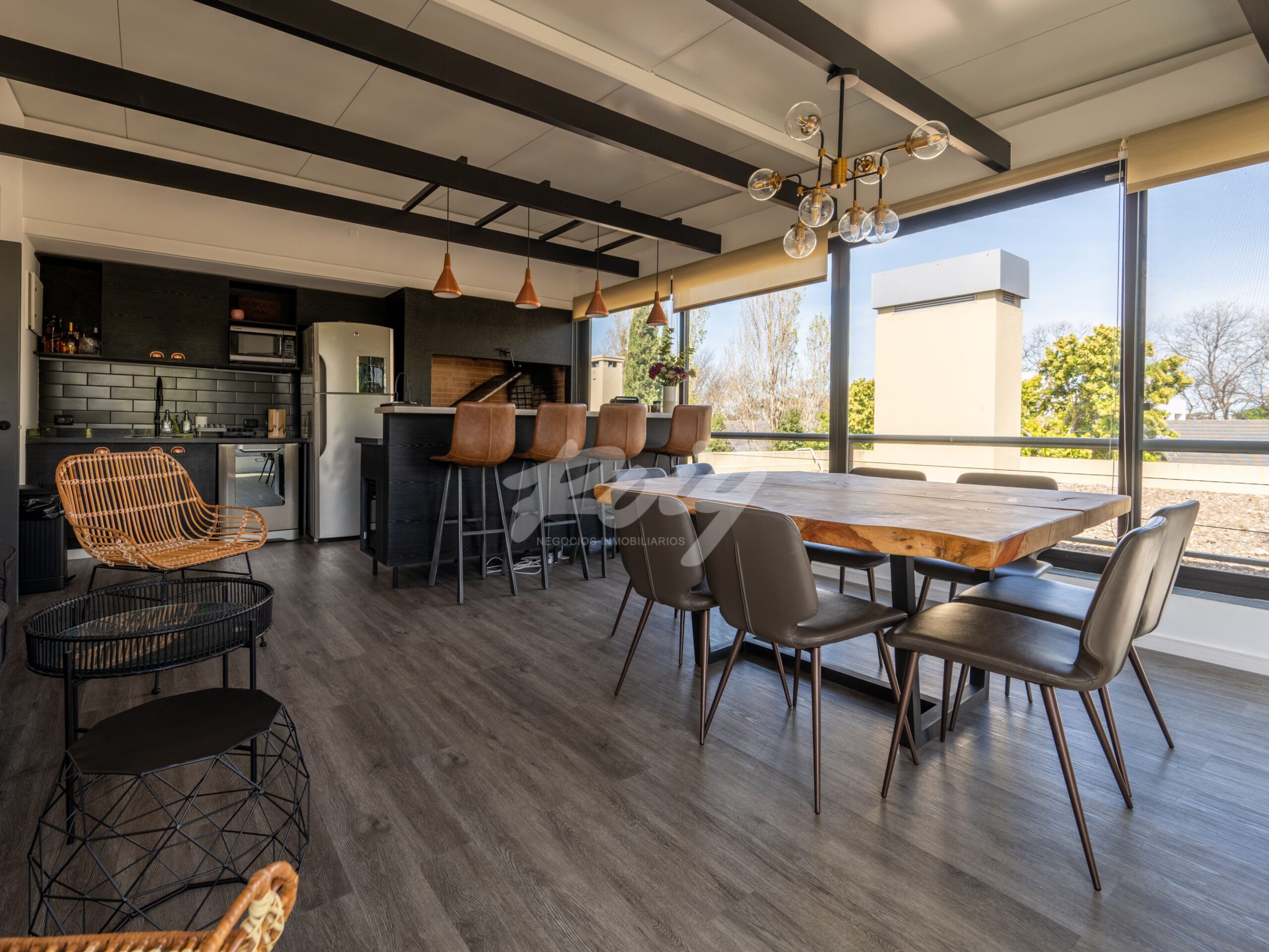 Cuenta con un amplio living – comedor con salida directa a la terraza. Estar/playroom con escritorio y baño en segunda planta con parrillero propio. Toilette de visitas. Cocina definida.