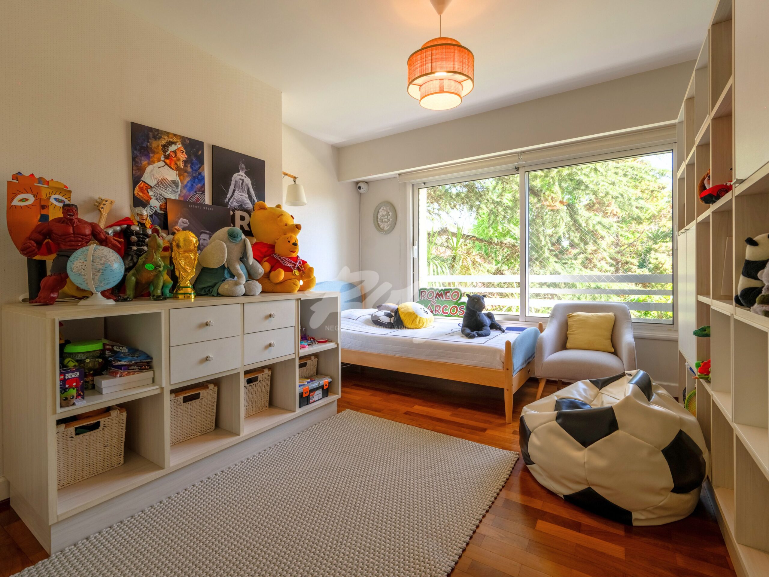 En el área íntima se desarrollan 3 dormitorios + servicio, incluyendo una suite principal con vestidor, y un baño completo que comparten los otros dos dormitorios. Además, dispone de garage para 3 autos.