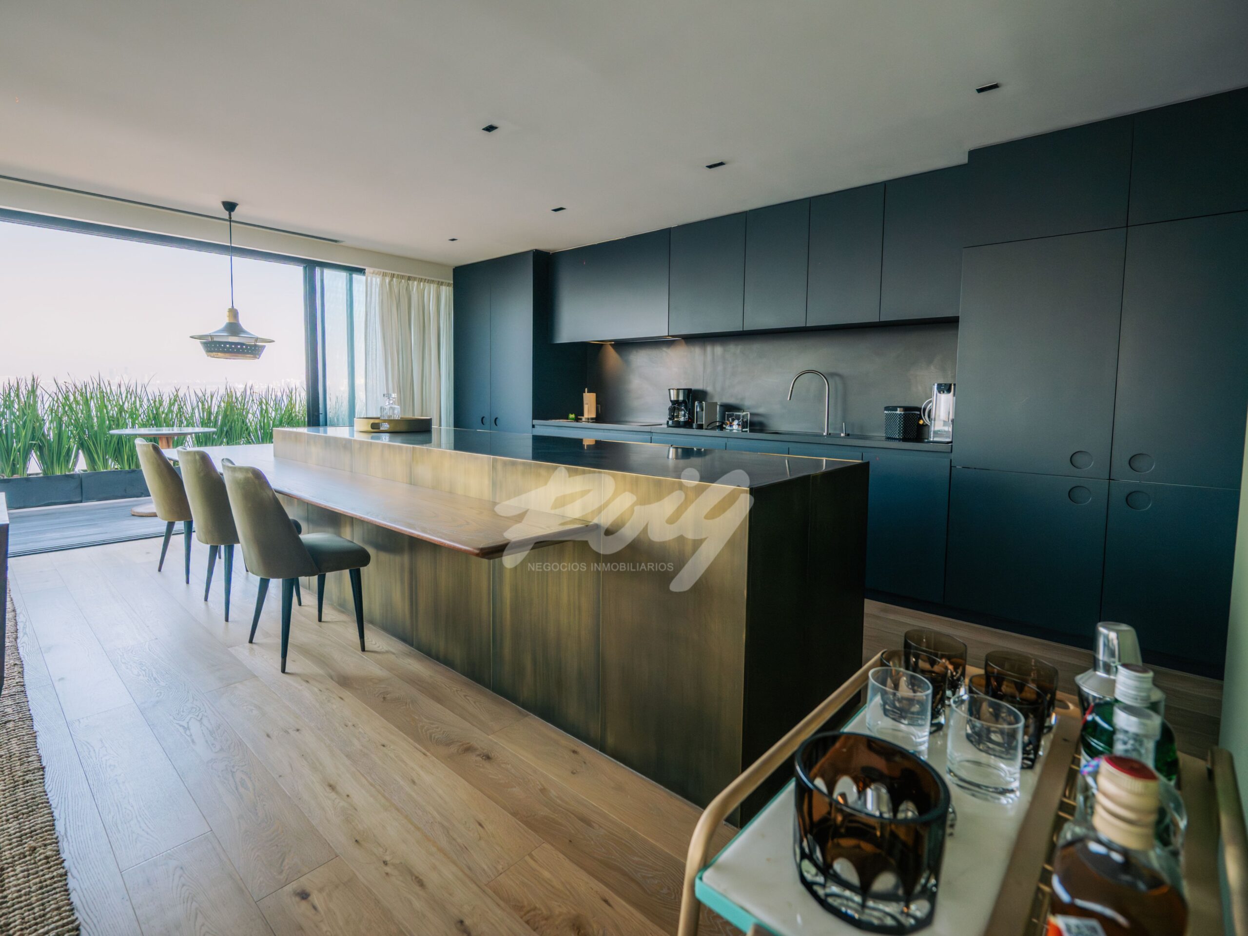Exclusiva unidad con una impronta moderna y sofisticada, donde los espacios se integran de manera fluida maximizando la luz natural y las vistas. El área social está compuesta por un amplio living – comedor con cocina integrada y terminaciones de alta gama. Grandes ventanales permiten una conexión directa con el entorno y potencian la luminosidad. Cuenta además con un estar íntimo y toilette de visitas.