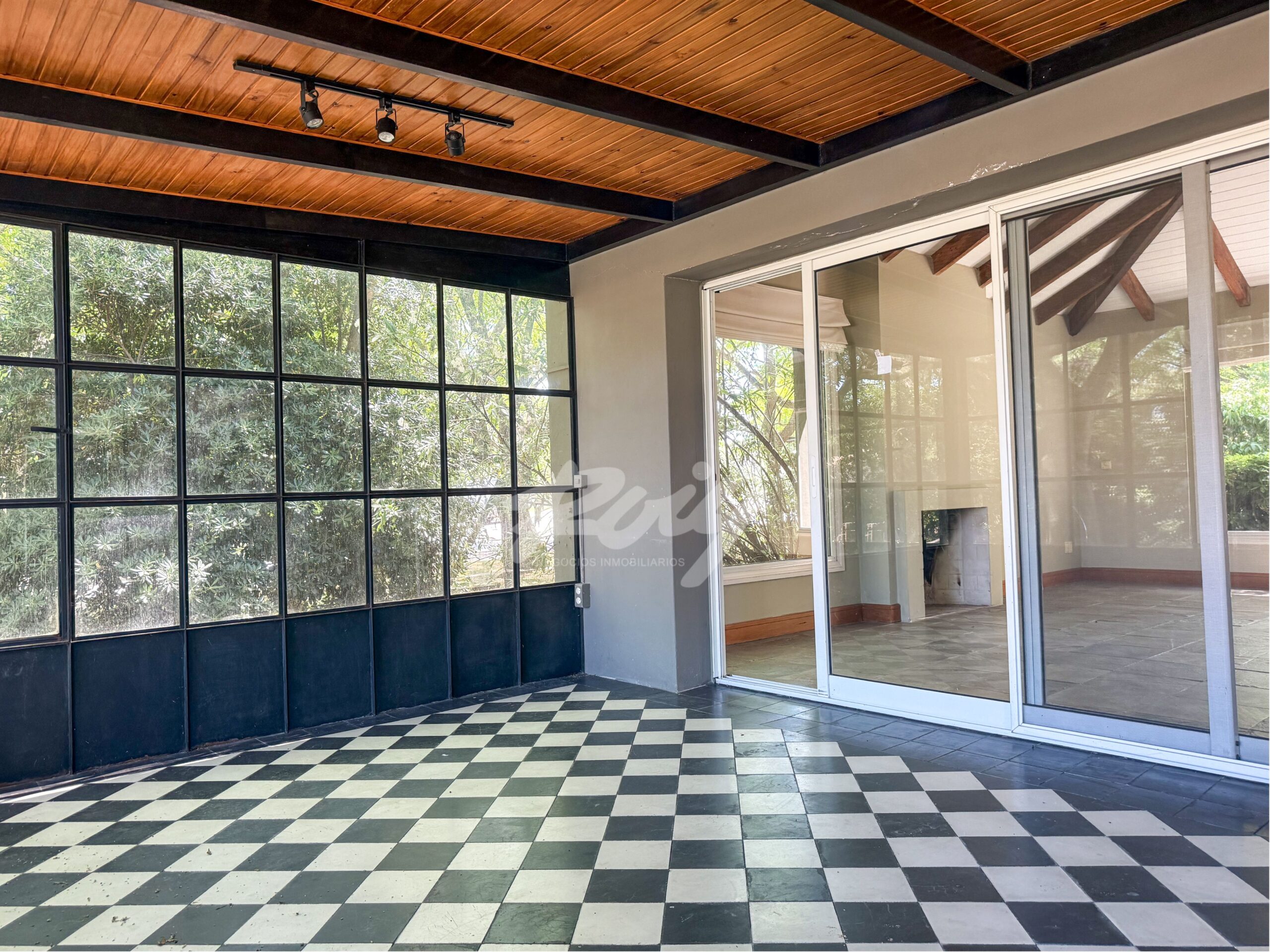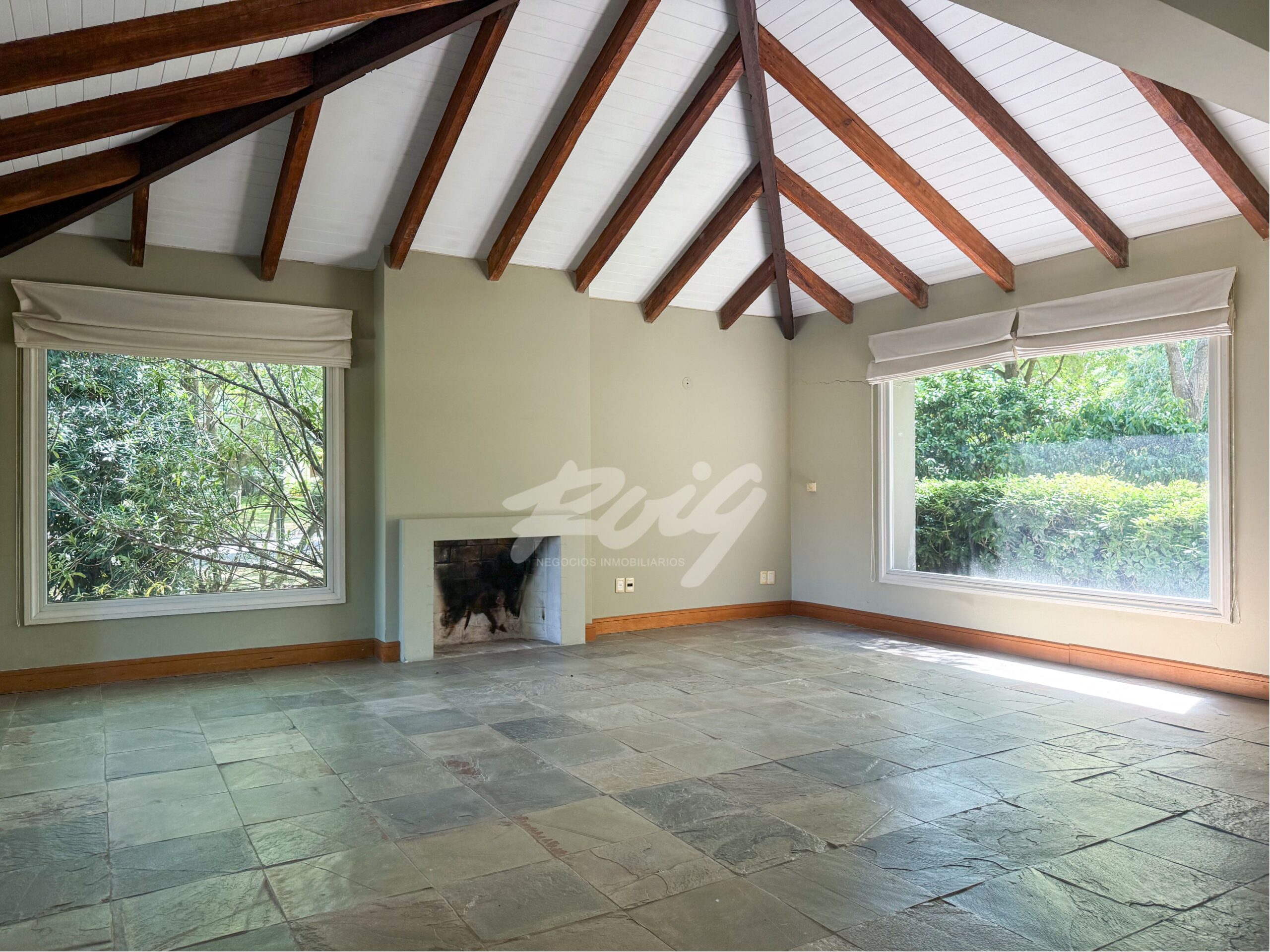 Al ingresar, un hall de entrada da paso a un amplio y luminoso living – comedor con estufa a leña y salida directa a un jardín de invierno, además de conexión a una terraza techada. Estar diario con salida a la terraza. Cocina, grande y súper equipada, se presenta semi integrada mediante pasaplatos, con excelente capacidad de guardado y circulación fluida. Desde allí se accede directamente a la zona de lavadero y al dormitorio de servicio completo.