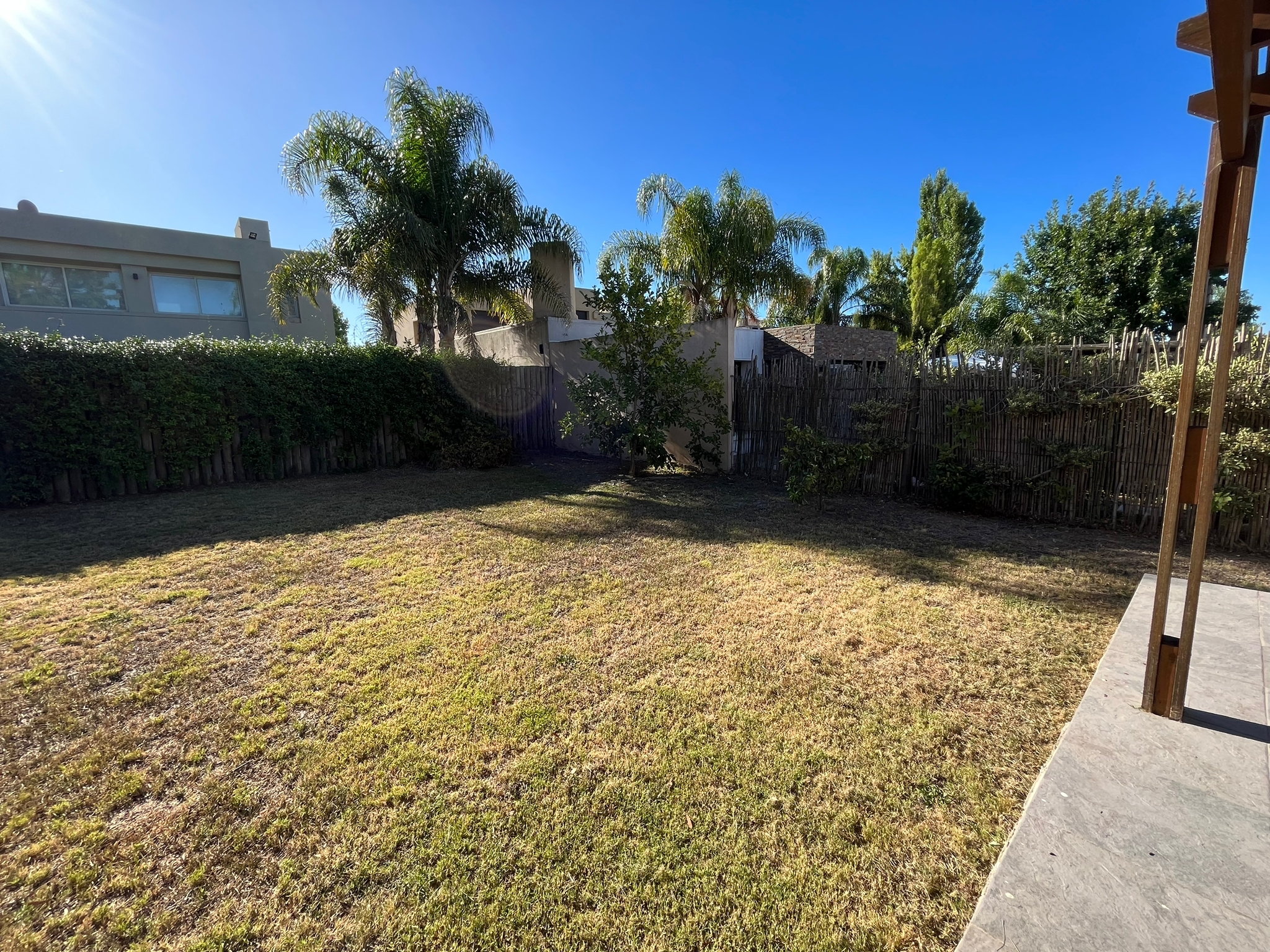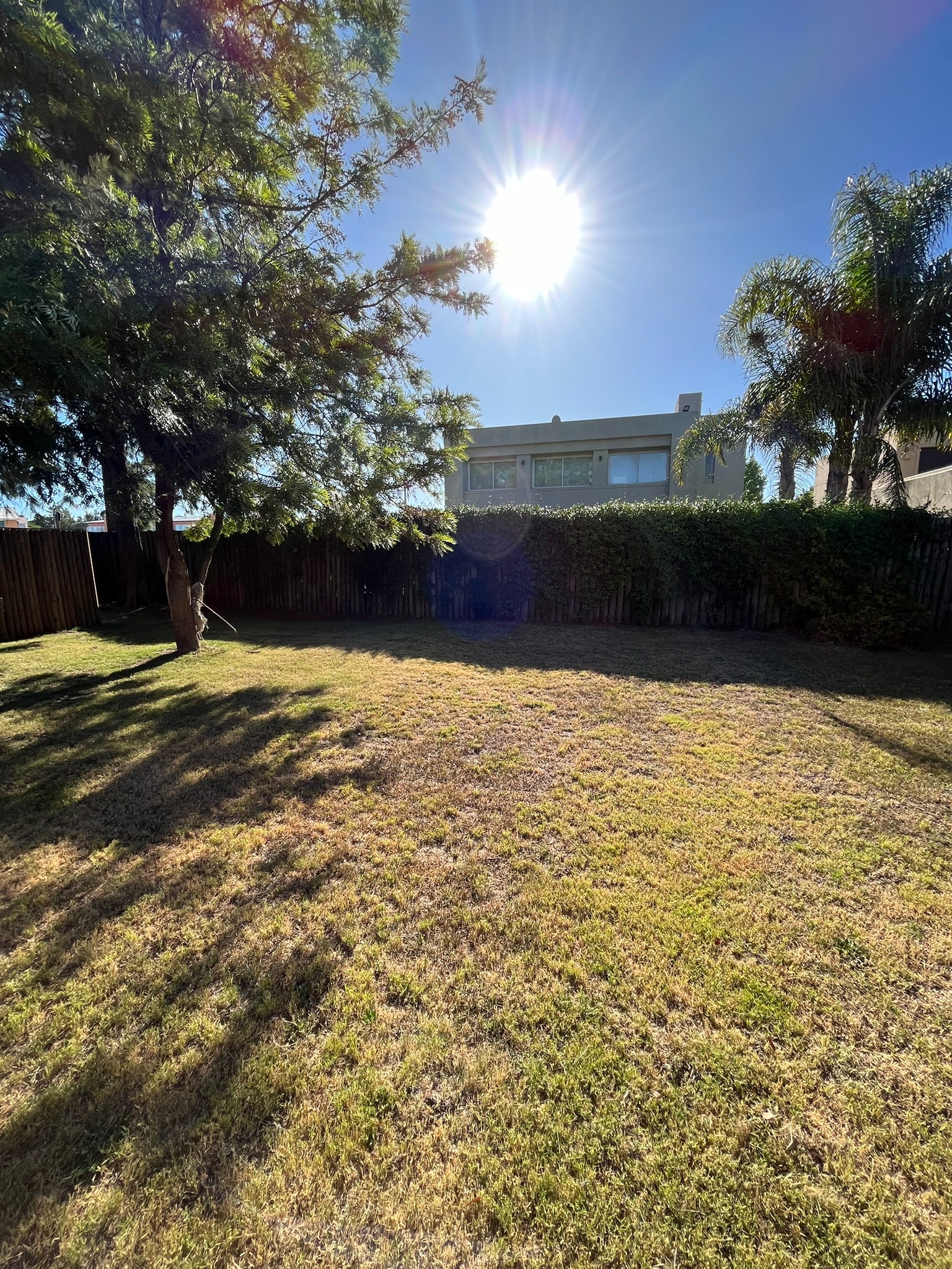 Fondo orientado al norte, muy soleado y disfrutable, con parrillero techado ideal para reuniones al aire libre.