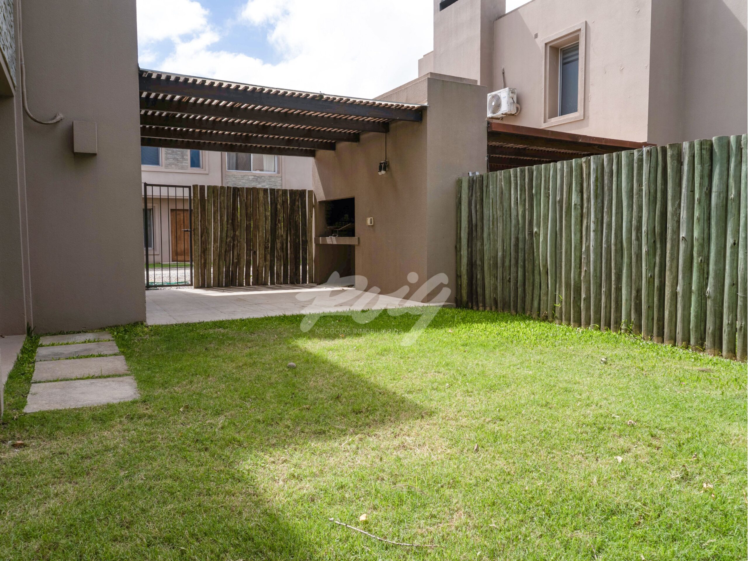 En el exterior, se encuentra una pérgola techada con parrillero y jardin privado con conexión a entrada lateral. La casa cuenta con calefacción por losa radiante eléctrica, sistema de alarma y riego automático.