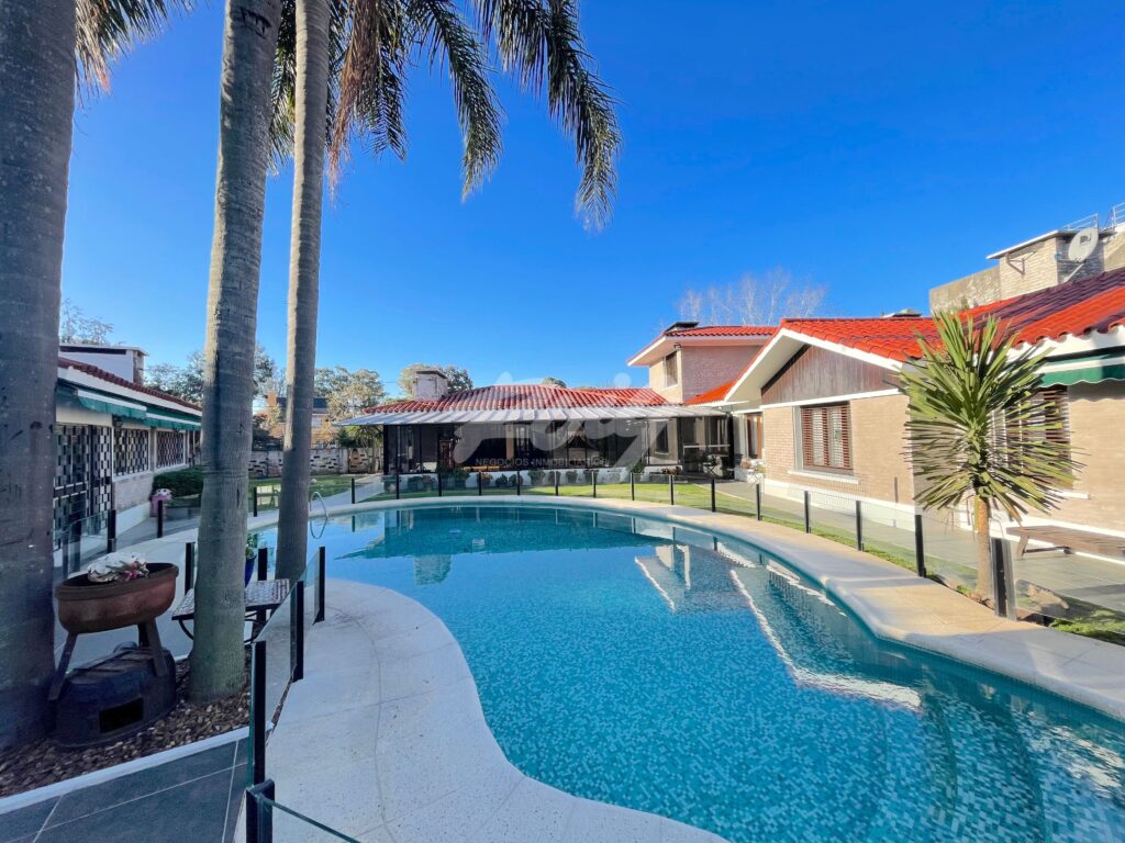 Sólida casa reciclada en Carrasco. Cuenta con 598 m2 construidos desarrollados mayormente en una planta, y ocupa un terreno de 1.127 m2. Amplia recepción, gran living comedor con estufa a leña, amplio estar con estufa de alto rendimiento, comedor diario, escritorio, y disfrutable galería cerrada. Moderna cocina reciclada con office. 4 dormitorios (el principal en suite), 1 dormitorio en suite con estufa a leña en planta alta. Playroom. Sistema de calefacción mixto: calefacción por radiadores alimentados por caldera a gas en área de dormitorios, caldera a gas para aire acondicionado por ductos en todos los ambientes, y estufa a leña de convección de alta eficiencia. 5 estufas a leña en total. En subsuelo gimnasio (o garage para 2 autos), lavadero y dependencias de servicio. Jardín con gran piscina. Barbacoa cerrada con estufa a leña y baño. Depósito. Sistema de alarma y cerca eléctrica. Riego.