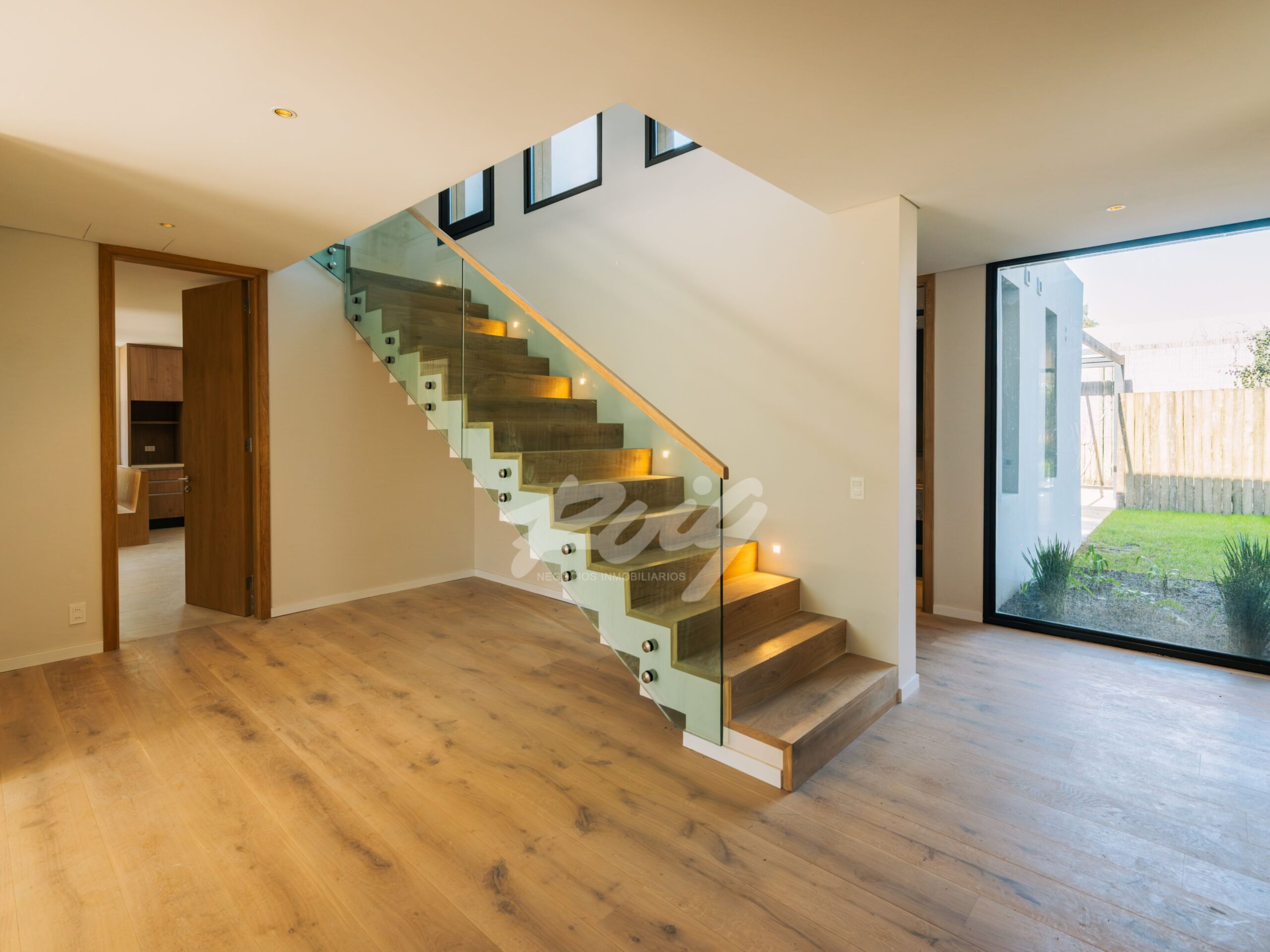 Desarrollada en dos plantas: En planta baja, se accede a través de un hall de entrada que conecta con un escritorio al frente. Amplio living-comedor con salida a gran terraza techada con parrillero. Estar independiente. Cocina definida con comedor diario de madera e isla central, lavadero, entrada de servicio, y dormitorio con baño de servicio completo. En planta alta, se distribuyen 4 cómodos dormitorios. La máster suite cuenta con gran vestidor, baño en suite y salida a balcón. Dos dormitorios adicionales comparten un baño en modalidad semi-suite. El cuarto dormitorio es también en suite y con vestidor.