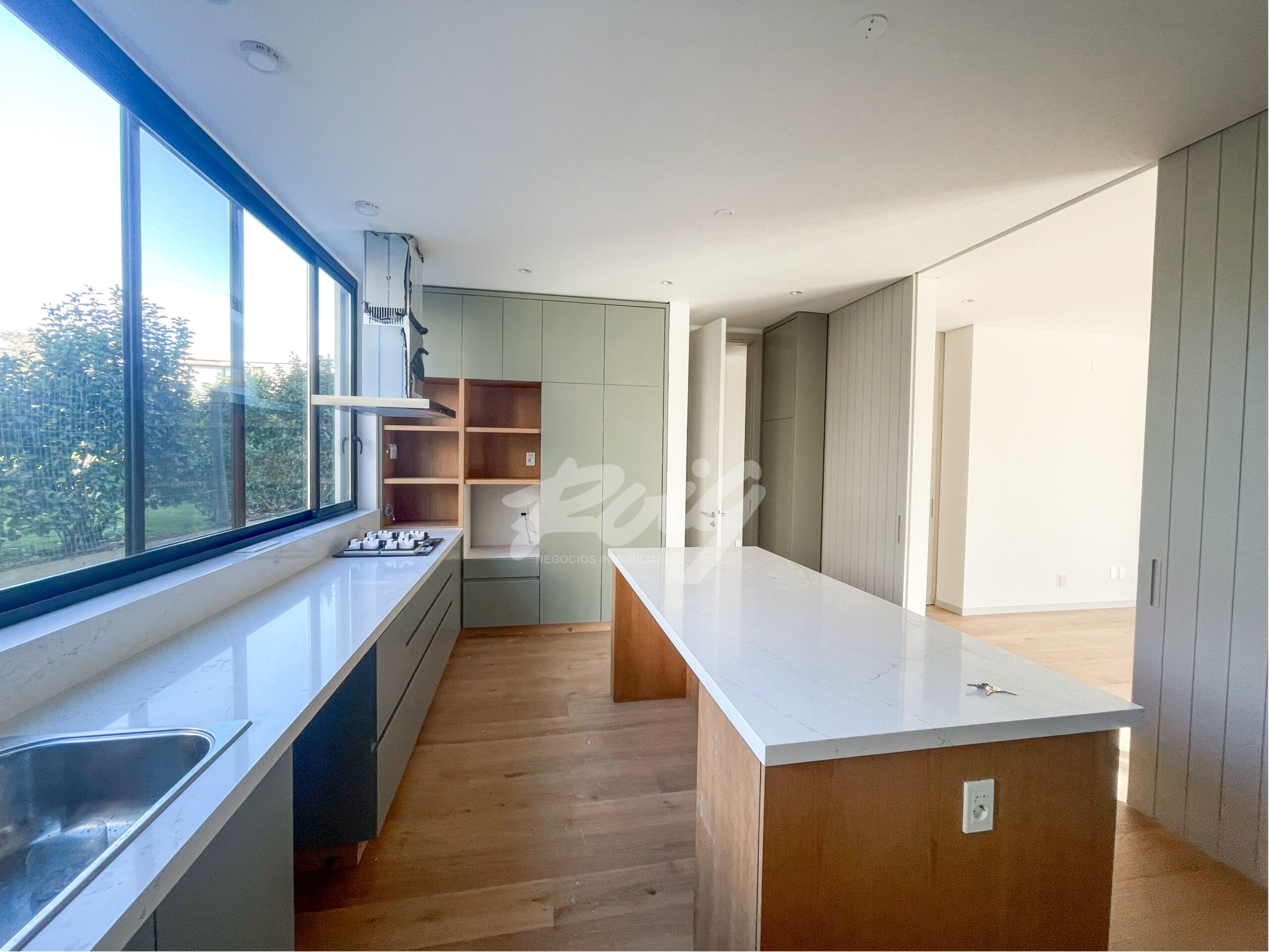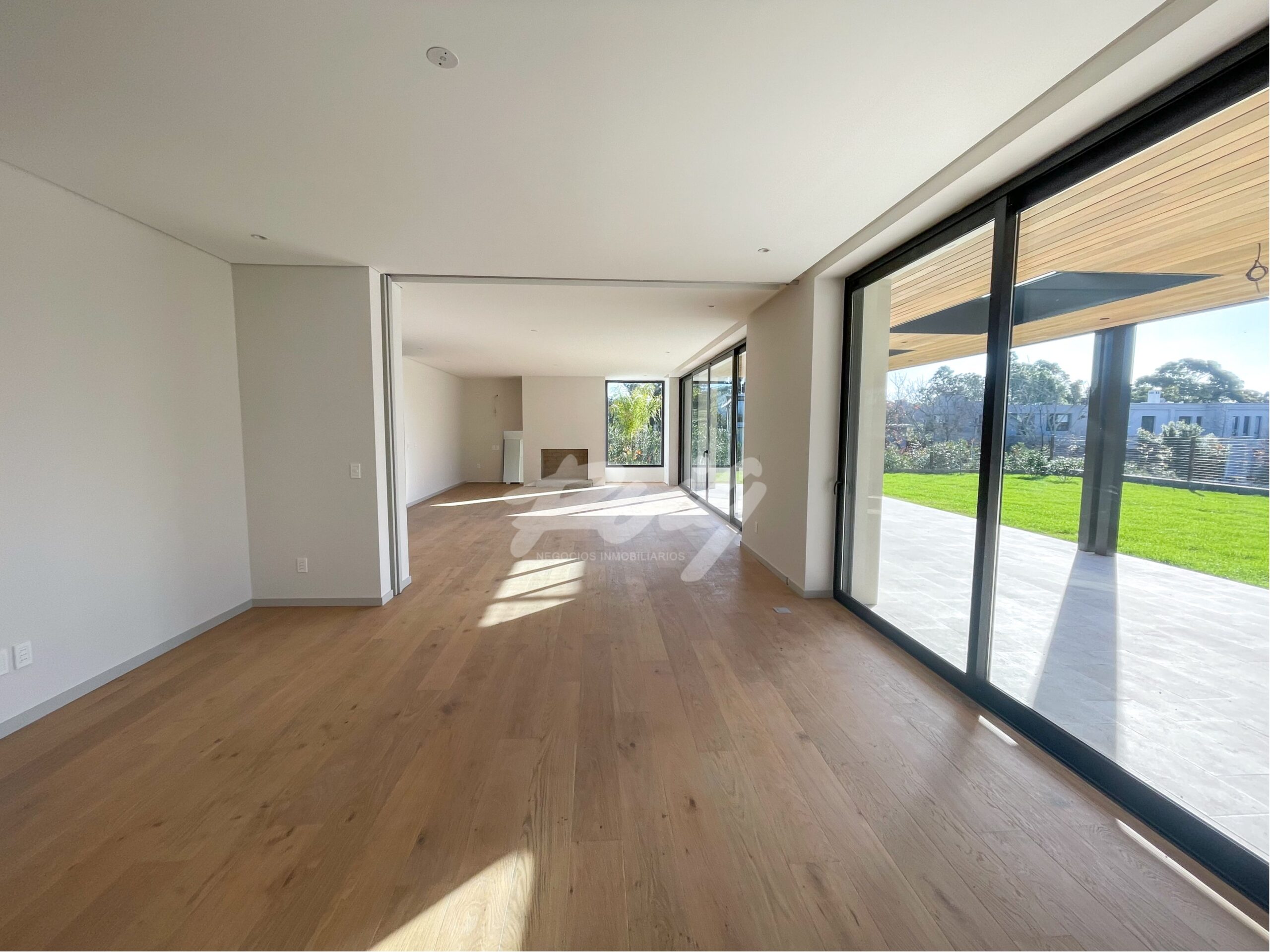 Casa moderna y muy luminosa, desarrollada en dos plantas. En planta baja se destaca un elegante hall de entrada. Toilette de visitas. Gran living-comedor con estufa a leña, acompañado por ventanales de piso a techo que integran plenamente el jardín. Cuenta además con un estar independiente y una amplia cocina con isla, excelente capacidad de guardado y muy buena circulación. Completa esta planta el dormitorio de servicio.