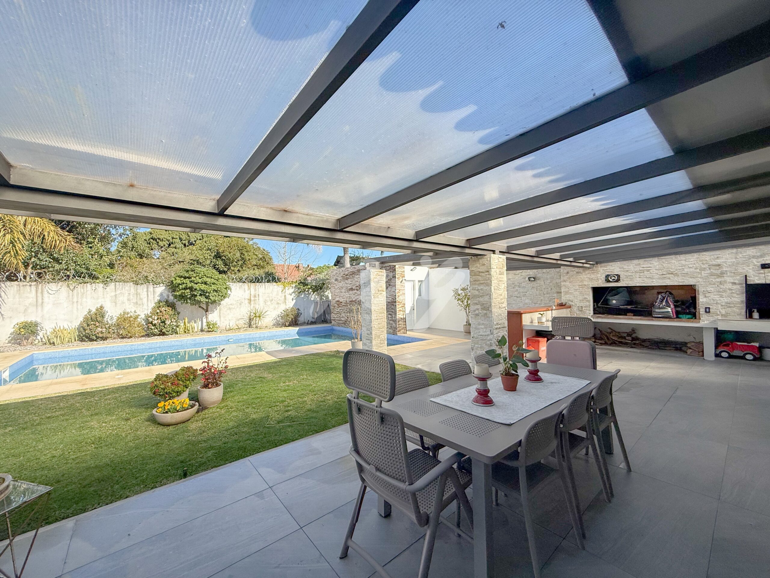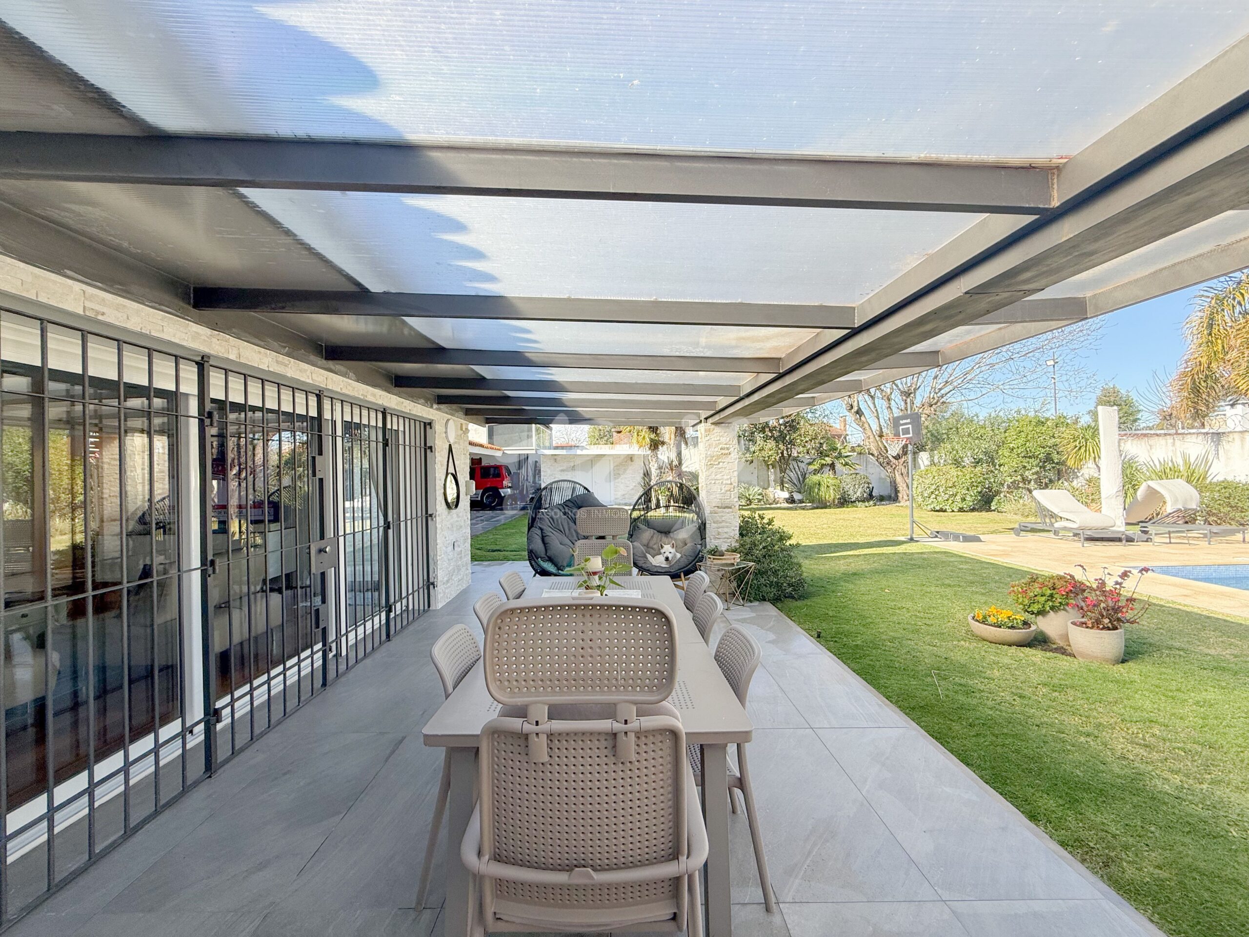 El área exterior, con una gran terraza con parrillero, piscina climatizada con baño completo de apoyo y una moderna barbacoa totalmente equipada también con parrillero. Los jardines, tanto al frente como al fondo, cuentan con riego automático y se integran a los espacios sociales de la casa. El frente ofrece un garaje para dos autos y espacio adicional para varios más al aire libre.