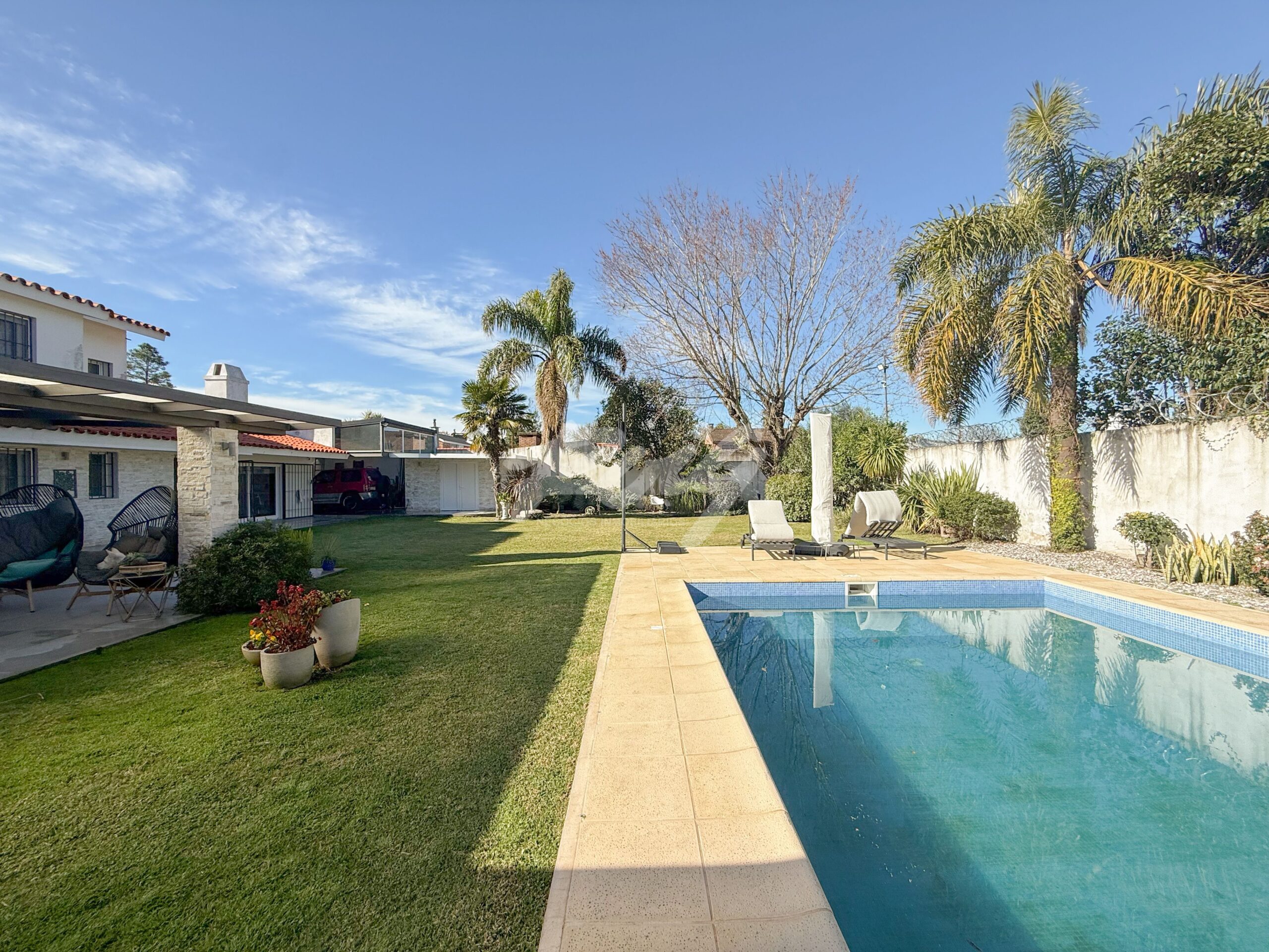 Residencia de gran categoría en Carrasco, desarrollada sobre un terreno de 1.213 m² con un amplio frente y 479 m² construidos. La casa ofrece un gran living–comedor con estufa a leña, separado por puerta corrediza de un estar íntimo con salida directa a la terraza y al jardín. Cuenta además con un escritorio. Cocina muy amplia con conexión a lavadero. En planta baja, 3 dormitorios, donde la suite principal se destaca por su gran vestidor y baño con jacuzzi, mientras que los otros dos dormitorios comparten un baño completo. En planta alta dispone de un cuarto dormitorio en suite.