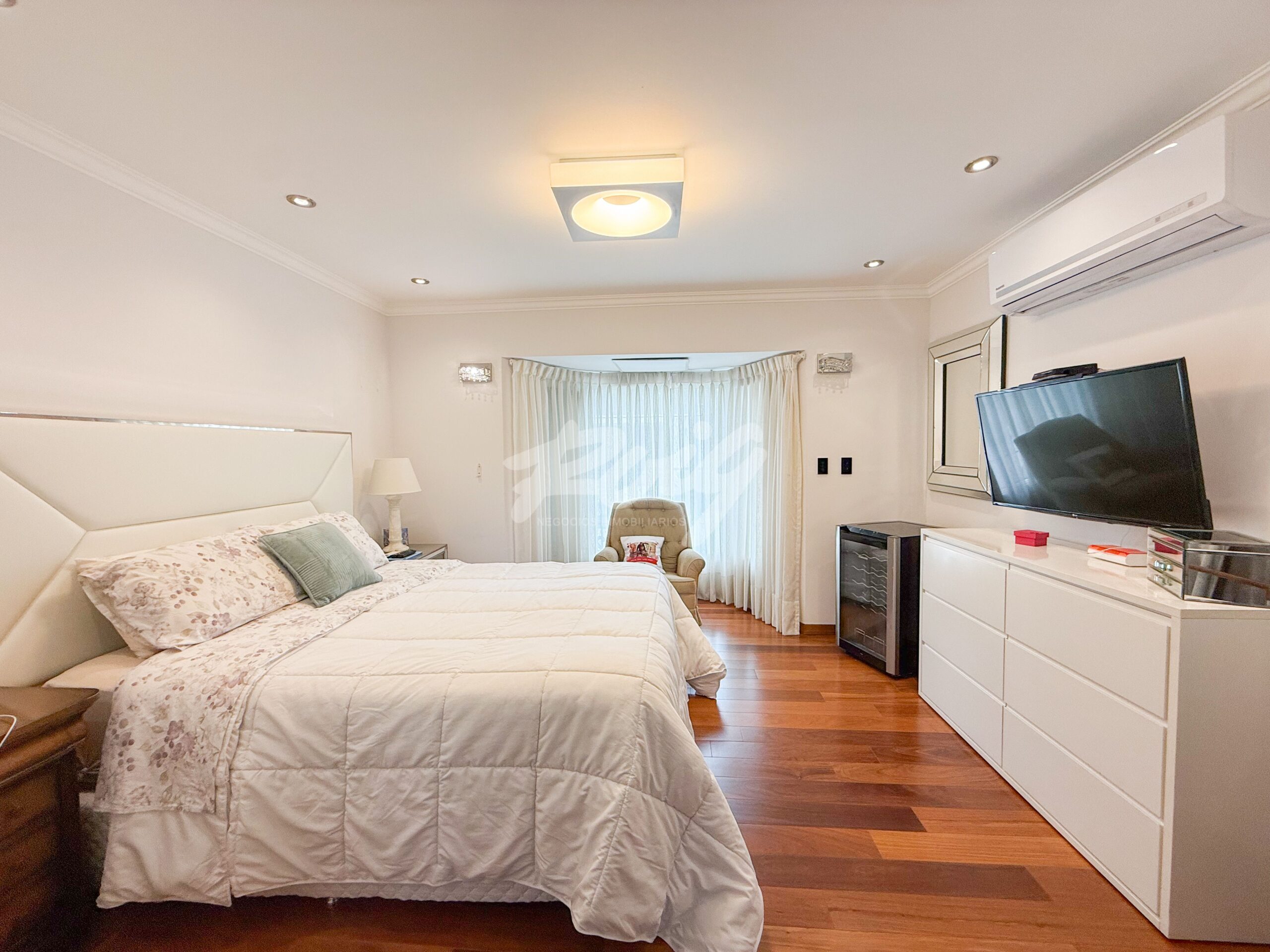 La propiedad se completa con un alto nivel de confort y seguridad, con aire acondicionado en todos los ambientes, portero eléctrico con cámara, puerta blindada, portón y reja de garaje eléctricos, aberturas y luces domotizadas, paredes revestidas en piedra Bosch & Cía en el salón principal, alarma perimetral y en toda la casa, además de un sistema de cámaras en funcionamiento.