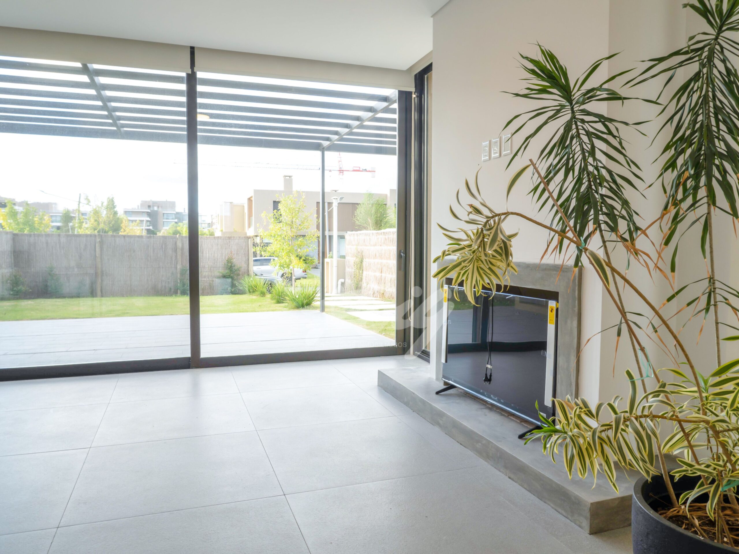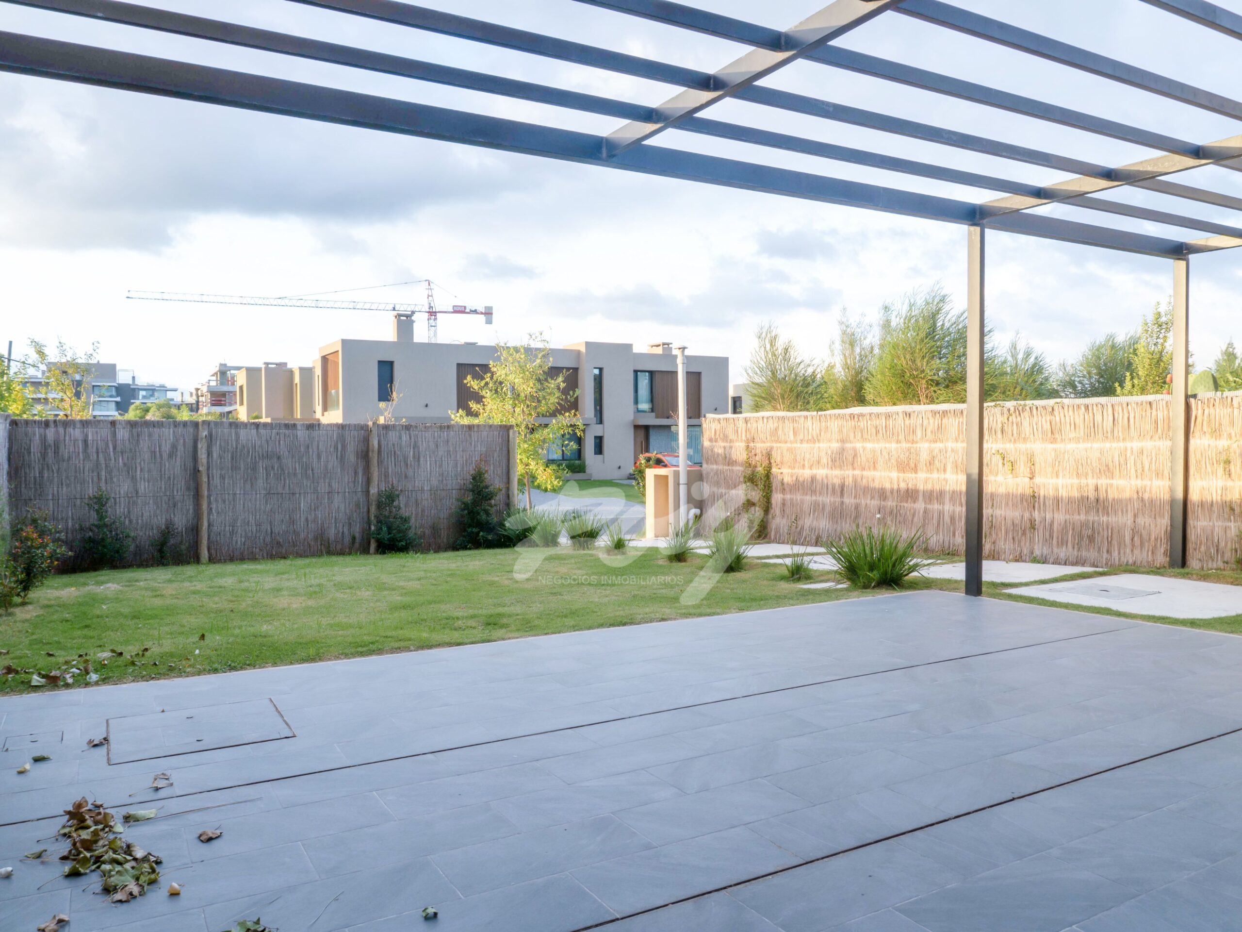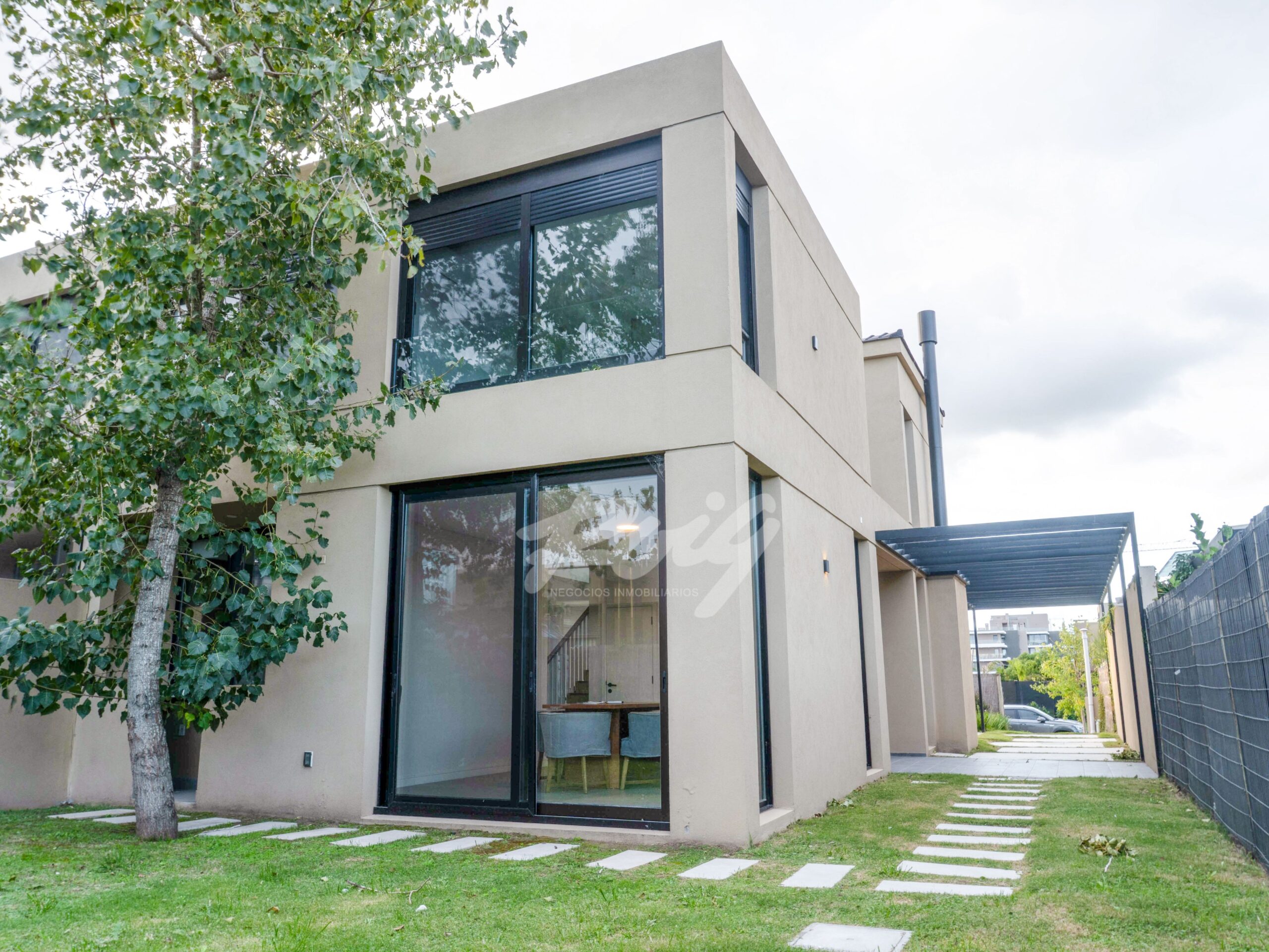 En planta alta, se encuentran 3 dormitorios. El dormitorio principal es en suite con vestidor y orientado al norte, mientras que los otros dos dormitorios comparten un baño completo y cuentan con placares. El exterior ofrece un jardín al frente acompañado por una terraza con parrillero y mesada con pileta; Hacia el fondo, la propiedad dispone de un segundo jardin, que brinda la posibilidad de desarrollar un bungalow o un dormitorio de servicio con baño.