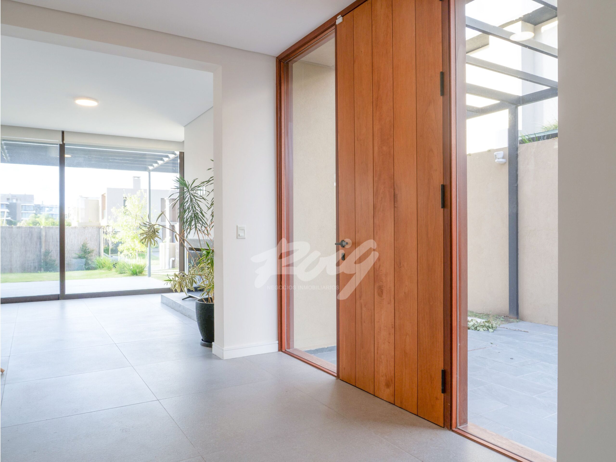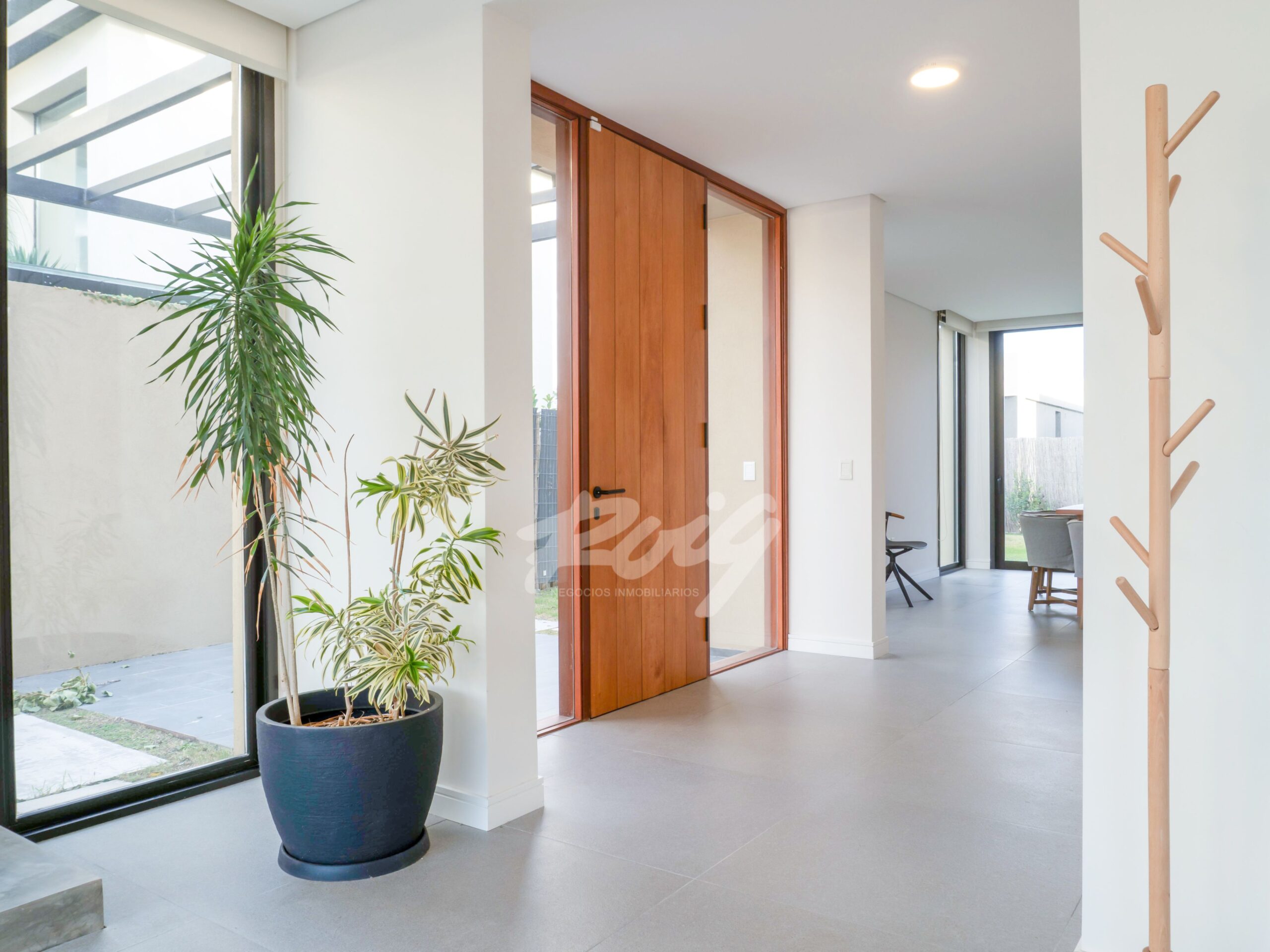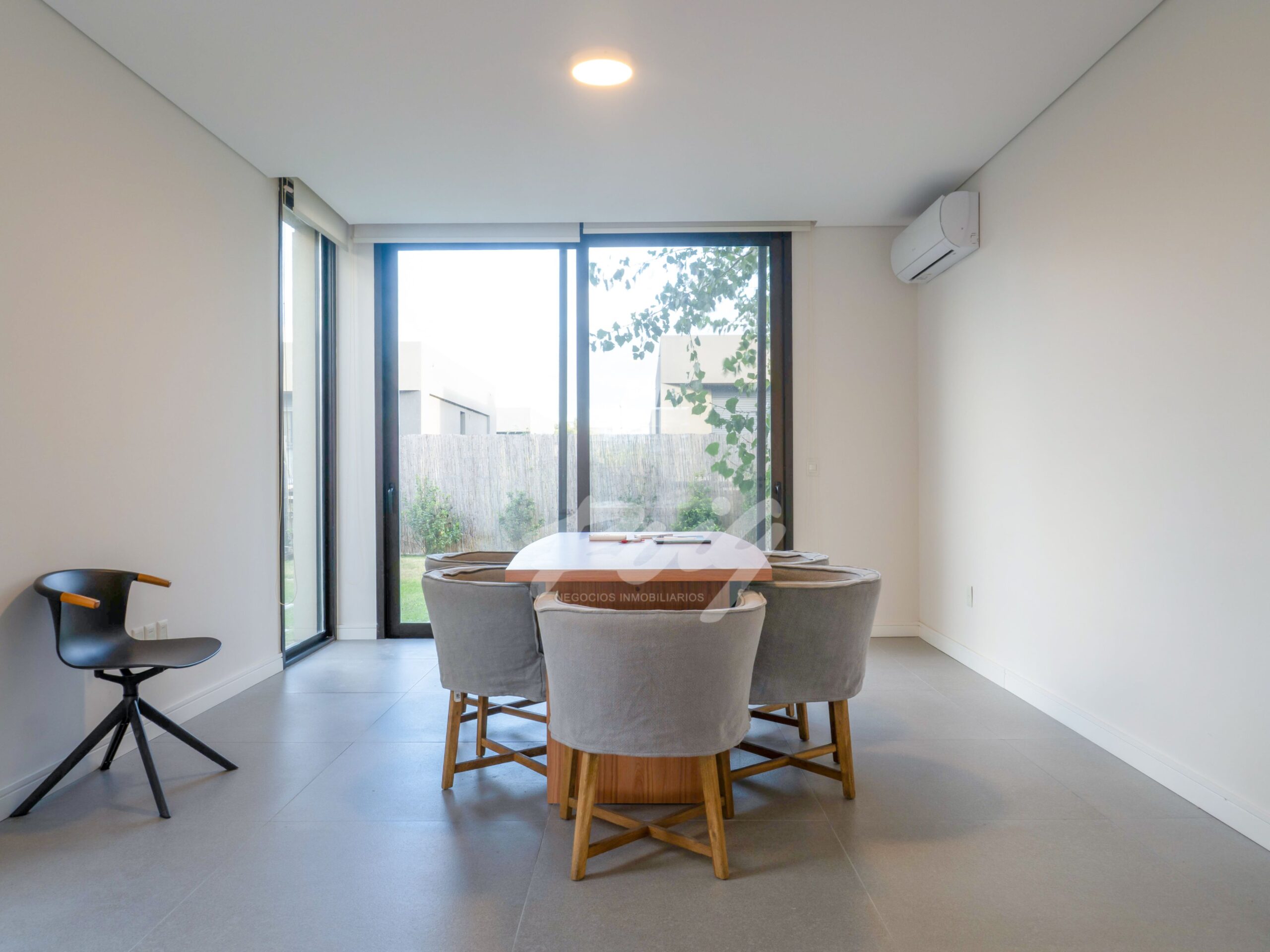 En planta alta, se encuentran 3 dormitorios. El dormitorio principal es en suite con vestidor y orientado al norte, mientras que los otros dos dormitorios comparten un baño completo y cuentan con placares. El exterior ofrece un jardín al frente acompañado por una terraza con parrillero y mesada con pileta; Hacia el fondo, la propiedad dispone de un segundo jardin, que brinda la posibilidad de desarrollar un bungalow o un dormitorio de servicio con baño.